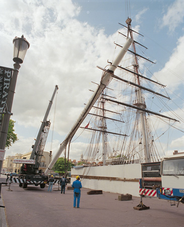 To mark the start of a major public appeal for £2m to save Greenwichs most famous landmark, Vanguard gave the Cutty Sark a facelift when we swapped the last of the original ships masts with a new one, 85 feet long and weighing 8 tons. Two cranes, one 25-ton and one 90-ton, were used to perform a tandem lift, watched by celebrated yachtsman, Robin Knox-Johnston, who launched the appeal.